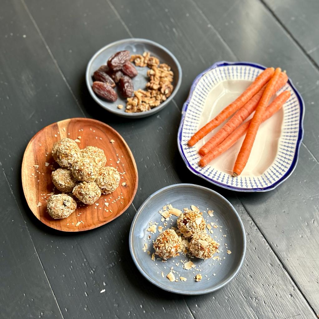 – Roll the carrot mixture into walnut sized balls and roll in the nut and seed mix